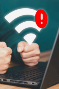 mujer con problemas en la señal wifi