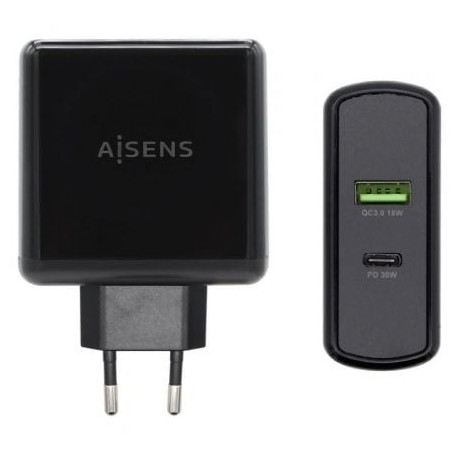 Cargador de Pared Aisens ASCH-2PD30QC-BK/ 1xUSB Tipo-C/ 1x USB/ 48W