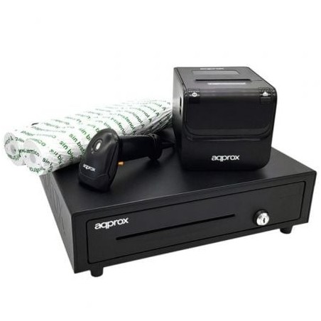• Pack Approx appPOSPACK4180 Cajón Portamonedas/ Impresora Térmica/ Lector de Códigos y Rollos Térmicos